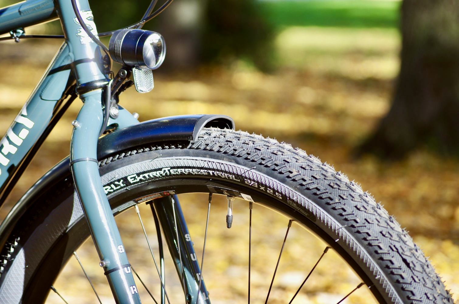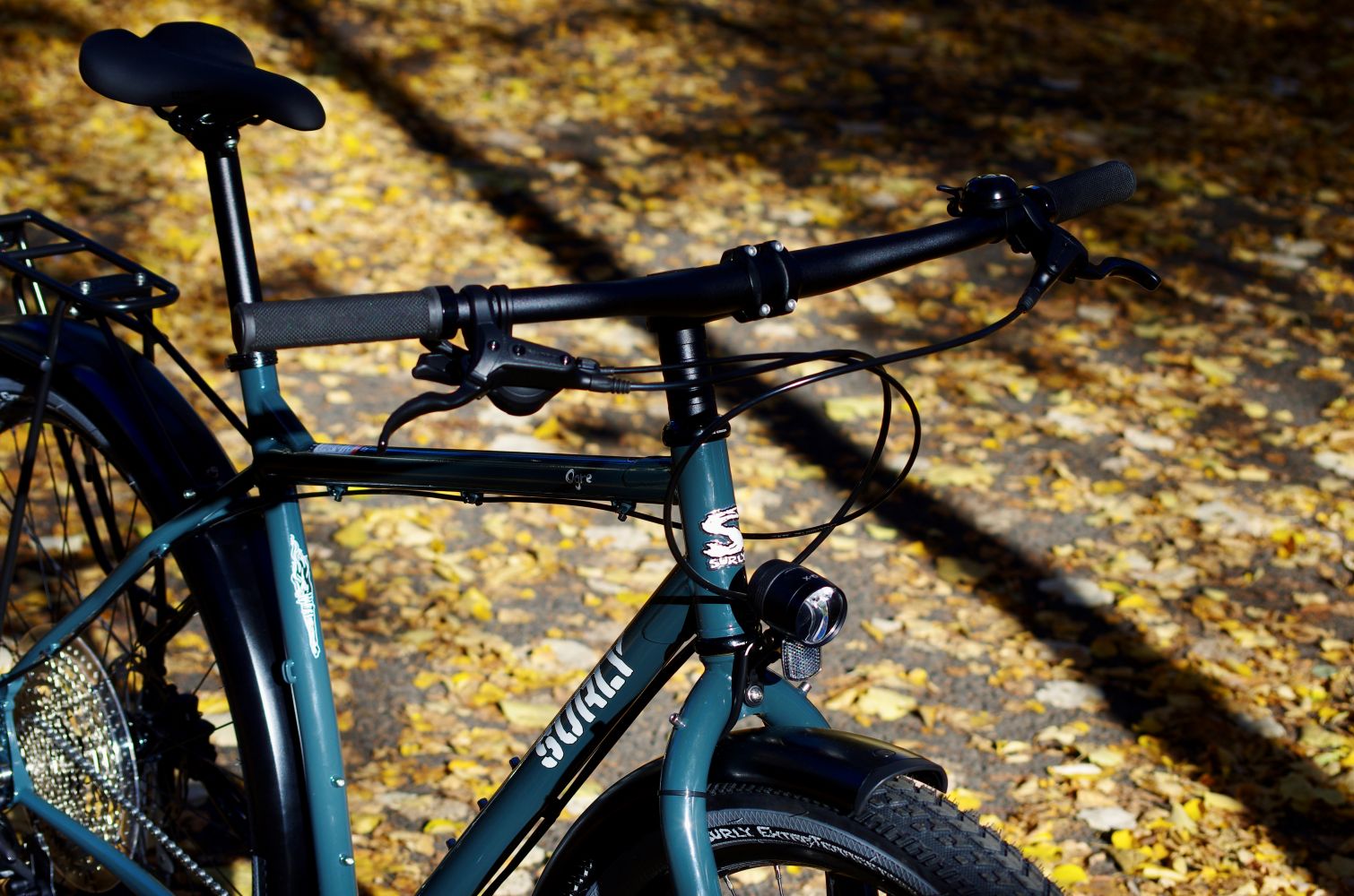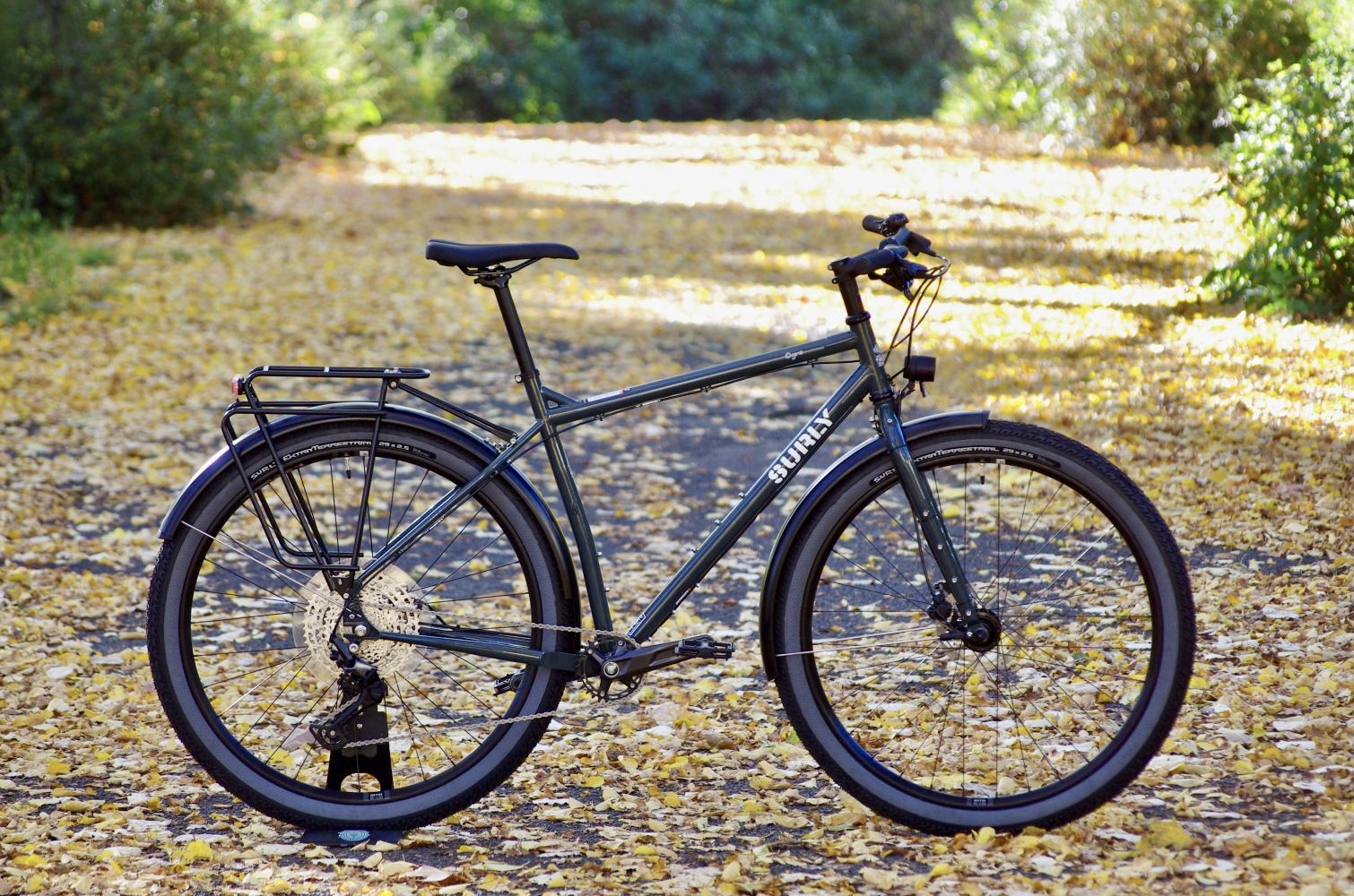 If you’re into really big tires and you’re looking for the ultimate do it all touring and commuting truck, then a Surly Ogre like this one might be your happy place to go. Upgraded it with sturdy Curana Apollo fenders, super bright B&M IQ-XS dynamo light and a solid Tubus rack.